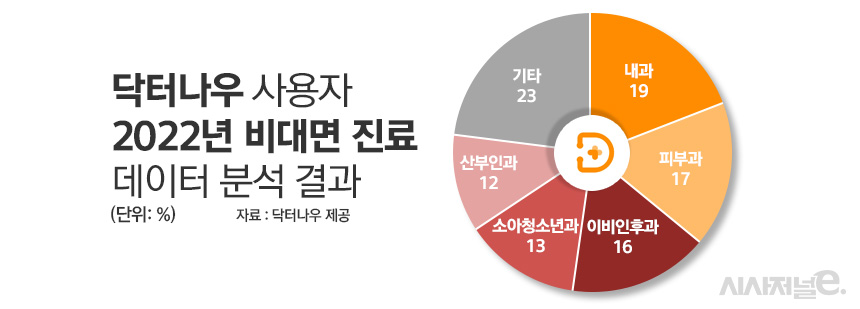 플랫폼 업계 측은 진료 과목별 초진 비율을 다르게 파악하고 있었다. 대표적인 비대면 의료 업체 닥터나우가 자사 앱의 2022년 비대면 진료 데이터를 분석한 결과 가장 많이 이용한 과목은 내과(19%)로 나타났다. 이어 피부과(17%), 이비인후과(16%), 소아청소년과(13%), 산부인과(12%) 순이었다. 닥터나우 관계자는 ”플랫폼 천 진료를 기준으로, 초·재진 여부를 파악했을 때 초진 비율은 99%“라고 설명했다. 이에 따르면 초진 비율 역시 이용 과목과 동일하다고 해석 가능하다.