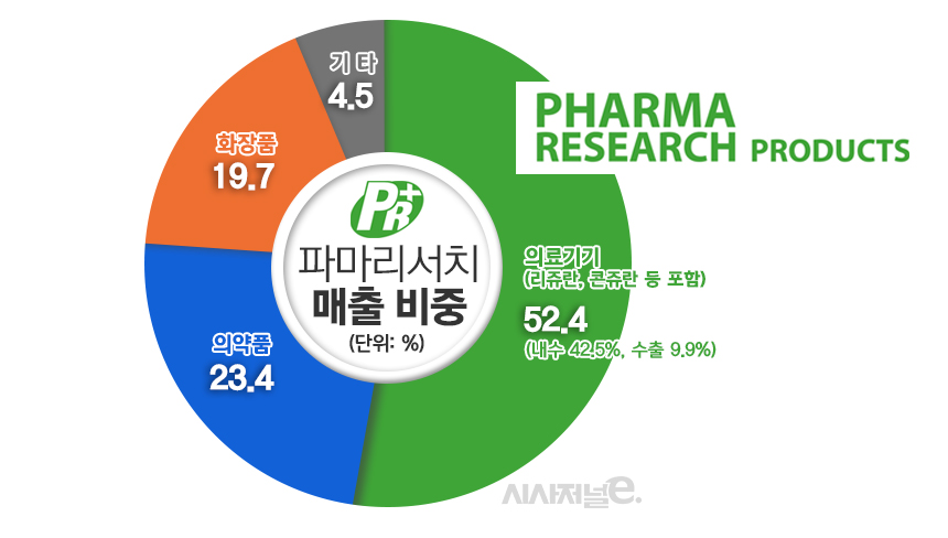 파마리서치의 대표 제품인 리쥬란·콘쥬란은 의료기기 분야에 속하는데, 파마리서치의 전체 매출액 중 의료기기의 비중은 2022년 52.4%에 달한다. 이중 내수가 42.5%, 수출이 9.9%다. 이어 의약품 23,4%, 화장품 19.7%, 기타 4.5% 순이다. 의료기기 비중은 두 제품의 매출이 확대됨에 따라 2020년 46%, 2021년 49.5%를 각각 기록하며 증가세를 보였다.