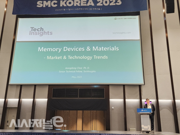 최정동 테크인사이츠 박사는 17일 수원컨벤션센터에서 열린 반도체 재료 컨퍼런스 ‘SMC 코리아 2023’에서 이같이 주장했다. 낸드의 경우 같은 면적에서 고용량을 구현하려면 단수가 높아야 하는데, 마이크론과 YMTC는 지난해부터 232단 제품을 생산 중이다. 삼성전자는 지난해 11월 236단 양산에 돌입했고, SK하이닉스는 상반기 내에 238단 낸드를 생산할 예정이다.