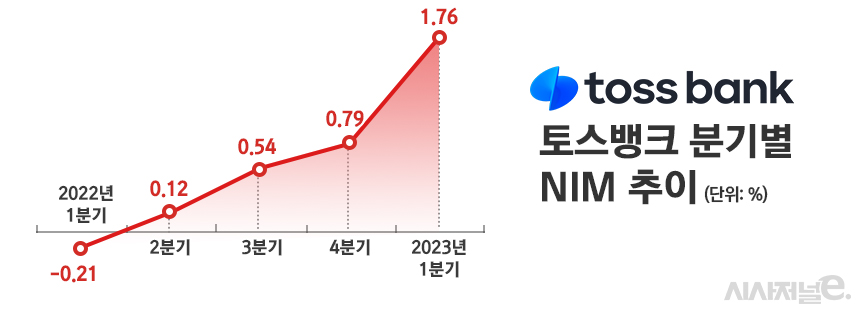 업계에서 수익성이 계속 오르면 올해 안에 흑자전환도 가능할 것이란 관측이 나온다. NIM이 상승한 덕분에 토스뱅크는 1분기에 출범 이후 가장 적은 적자규모(-280억원)를 기록했다. 지난해 2000억원이 넘는 손실을 거둔 것을 고려하면 실적이 크게 개선된 셈이다.