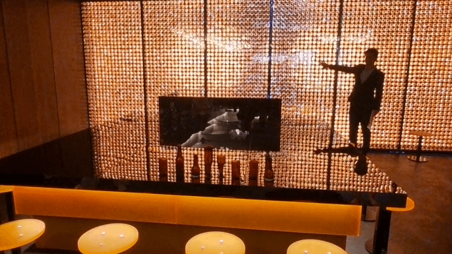 여기에 교촌의 정성이 깃든 조리방식을 연상하게 하는 거친 붓질 패턴과 소스 재료를 담은 선반 디스플레이로 교촌의 제품 철학을 그대로 표현했다. 이 외에도 교촌필방 미디어월은 교촌 수제맥주 브랜드 문베어브루잉의 맥주병을 재활용했고, 높낮이를 조절할 수 있는 가변형 테이블을 제작해 크리에이터 라운지 DJ존도 마련했다.