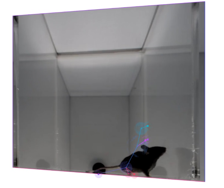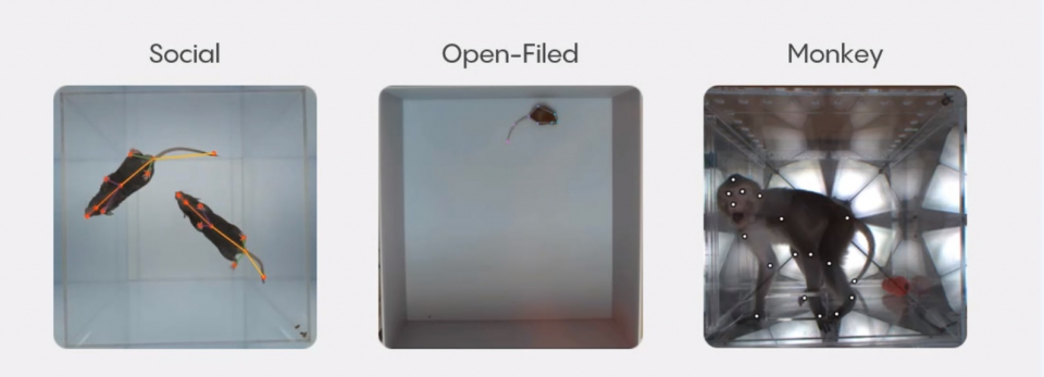 이런 AI 비전 알고리즘을 행동 실험 분석 분야에 적용한 것이다. 행동 영상과 이미지 데이터 등을 보고 특정한 영역을 검출하는 기술이다. 예를 들어 생쥐의 경우 중요 부위인 코끝, 머리 중심, 몸 중심, 항문, 꼬리 끝, 양손, 양발 등 총 9개의 키포인트의 위치를 정밀하게 검출한다.