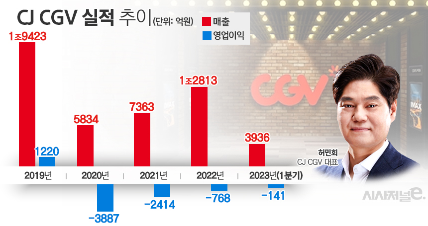 이번 자금수혈 배경에는 CJ CGV의 위기가 있다. 국내 영화관 업계 점유율 1위인 CGV는 코로나19 팬데믹에 직격탄을 맞았다. CJ CGV의 매출은 코로나 이전인 2019년 1조9423억원으로 2조원을 바라보고 있었으나, 2020년 5834억원으로 크게 추락했다. 2020년부터 적자도 이어졌다. CJ CGV는 2020년 3887억원, 2021년 2414억원, 2022년 768억원의 영업손실을 봤다. 올해 1분기에도 영업손실 141억원을 기록했다.