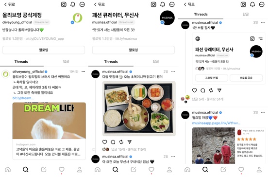 CJ올리브영·무신사 등 패션·뷰티업계 스레드 계정 개설 및 홍보 속도