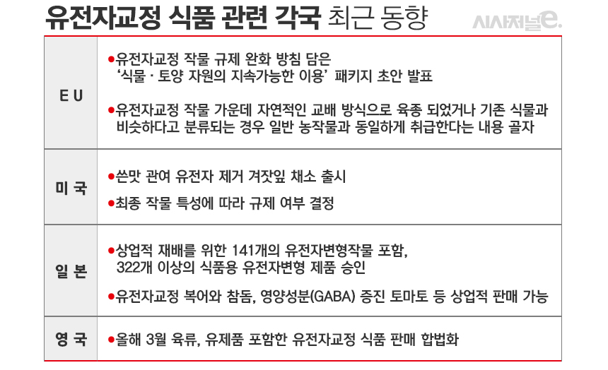 "美·日 유전체교정(GE)은 GMO라 판단하지 않는 등 규제 풀어 발전 가속화"