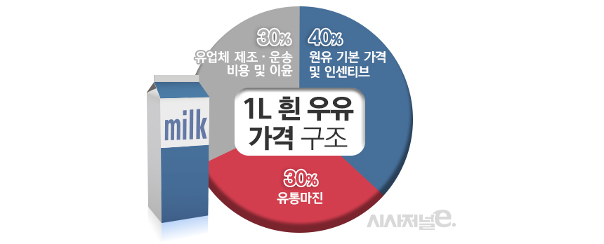 유업계, 흰 우유 마진율 1% 내외···소매 가격 중 원유 관련 비용 40%가량 차지