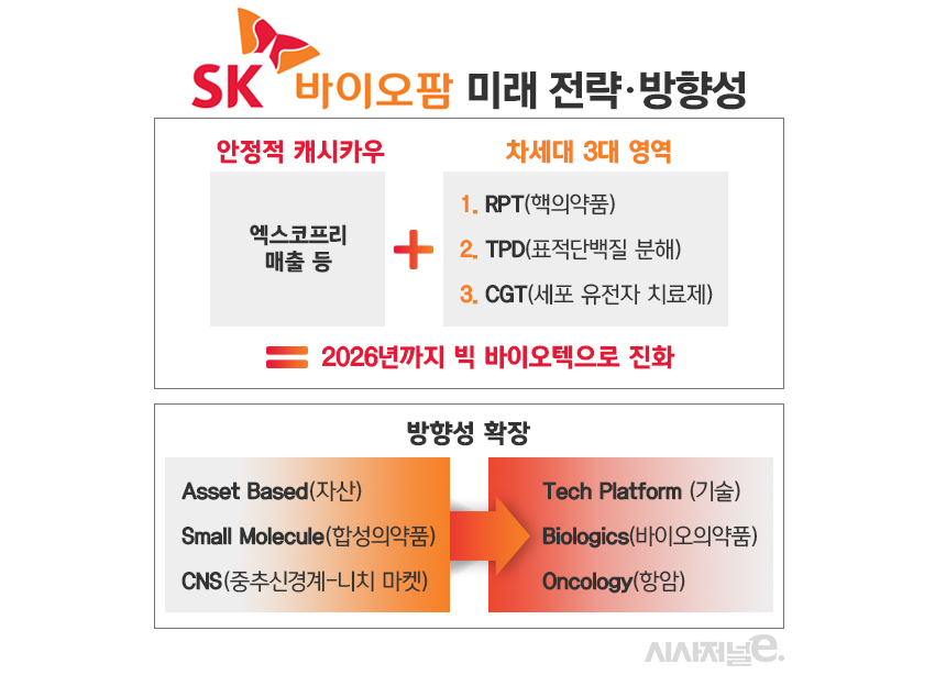 [시사저널e=김지원 기자]SK바이오팜이 자체 개발한 뇌전증 치료제 ‘엑스코프리(성분명 세노바메이트)’의 지속적인 성장과 이에 따라 창출된 현금을 바탕으로 혁신 신약 플랫폼 기술 3가지에 투자한다. SK바이오팜이 구축한 미국 내 직판 영업망을 통해 '제2의 신약'을 선보이고, 빅 바이오텍(Big Biotech)로 거듭난다는 목표다.