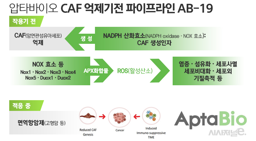 압타바이오 AB-19, 녹스 효소 통제해 CAF 억제···"단독치료제 사용 기대"