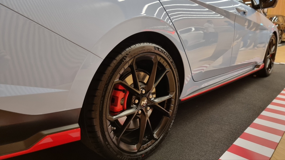 측면부는 하단부에서 앞뒤 범퍼로 이어지는 N 전용 빨간색 라인을 배치해 고성능차라는 점을 한 눈에 알 수 있도록 했다. 또한 자동차 휠 안에는 N로고가 있는 붉은 색의 브레이크 시스템도 넣었다.