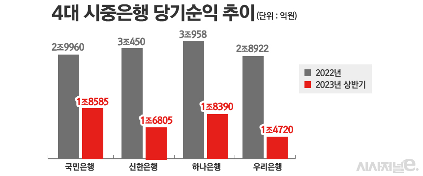 하지만 지난해 하나은행에 순익 1위 자리를 빼앗긴 점은 좋은 평가를 받기 어려운 상황이다. 국민은행의 작년 당기순이익(연결 기준)은 2조9660억원으로 하나은행(3조958억원), 신한은행(3조457억원)에 밀린 3위를 기록했다. 올해는 상반기까지는 국민은행이 다시 1위에 올랐지만 남은 기간 어찌될지는 지켜봐야한다는 의견이 나온다.