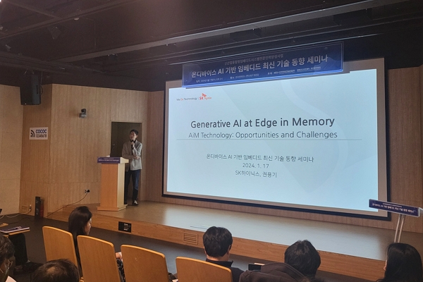 권용기 SK하이닉스 솔루션개발팀장은 17일 서울 서초구 한국컨퍼런스센터에서 열린 ‘2024 온디바이스 AI 기반 임베디드 최신 기술 동향 세미나’에서 “차세대 메모리에서 PIM의 경우 데이터센터형과 클라우드형 제품도 준비하겠지만, 차세대 AiM의 키 챌린지로는 아무래도 모바일 메모리를 준비하고 있다”고 말했다.