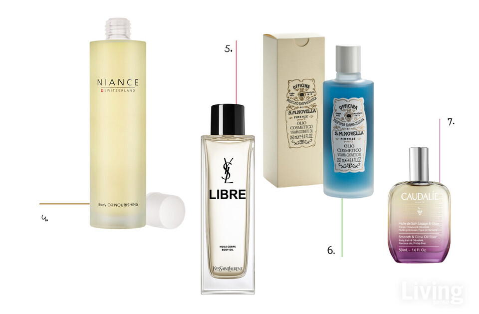 4. 피부 회복력과 탄력을 향상시켜 주는 바디 오일 너리싱. 자극 없이 안티에이징을 돕는 제품으로 섬세한 플로럴 향이 몸의 긴장까지 풀어준다. 200ml, 28만원 니앙스.