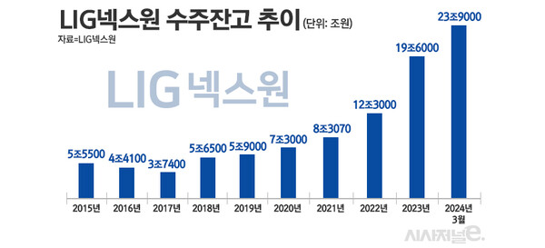 14일 업계에 따르면 LIG넥스원의 현재 기준 수주잔고는 23조9000억원이다. 올해 2월 발표된 사우디아라비아와의 4조3000억원 규모의 천궁II 계약을 포함해서다. 지난해 말(19조6000억원)과 비교하면 2개월여 만에 잔고가 21.9% 증가한 것이다. 2022년(12조3000억원)과 비교하면 1년2개월새 2배 이상 일감이 많아진 셈이다.