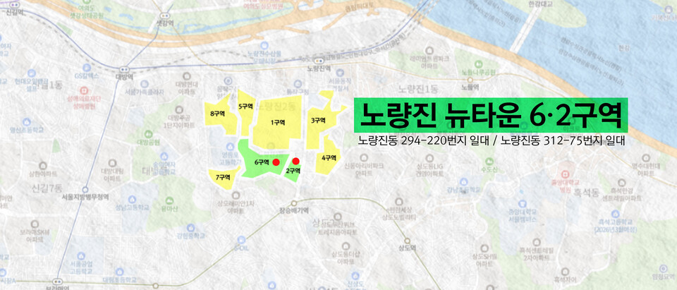 노량진 뉴타운의 시작은 20여년 전으로 거슬러 올라갑니다. 서울시는 2003년 2차 뉴타운지구로 노량진 일대를 처음 지정했습니다. 2009년에는 6개 구역으로 나뉘었고 이듬해에는 대방동 일대가 7~8구역으로 추가 지정됐습니다. 이로써 노량진 뉴타운은 노량진·대방동 일대 73만8000㎡ 규모, 8개 구역(존치관리구역 제외), 9052가구가 들어서게 됐습니다.