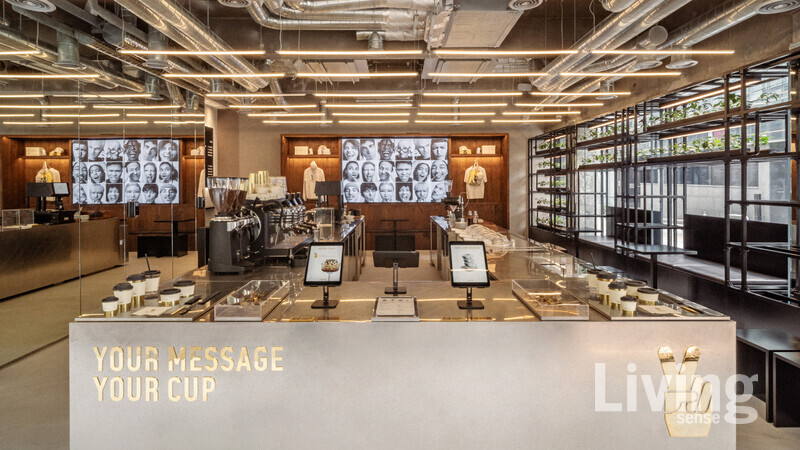 이탈리아 베니스에서 시작한 패션·라이프스타일 브랜드 골든구스가 서울 강남구 도산대로에 자리 잡은 플래그십 스토어에 국내 첫번째 유니크YOUNIQUE카페를 오픈했다. 카페는 골든구스의 시그니처 디자인으로 단장했다. 목재 마감과 골드 디테일이 조화롭게 어우러지고, 바닥과 벽의 콘크리트, 천장의 메탈소재가 대비되며 골든구스 특유의 거칠면서도 세련된 분위기를 자아낸다. 카페에 들어서면 말굽 모양 메탈 카운터가 시선을끈다. 원두, 베이스, 토핑을 직접 고를 수 있는 것이 유니크 카페의 장점. 티라미수와 아포가토, 젤라토 등 이탈리아 대표 디저트 메뉴도 눈길을 사로잡는다. 카운터에 설치한 태블릿으로 할 수있는 이색적인 체험도 놓치지말자. “오늘 기분은 어떤가요?”라는 질문에 대한 답변으로 총 5가지의 기분을 고를 수 있다. 행복, 우울, 졸림, 바쁨, 스타일리시 중 선택한 기분에 따라 컵의 슬리브에깜짝 메시지가 인쇄된다. 나만의 특별한 커피를 마신다는 기분으로 충만해진다.
