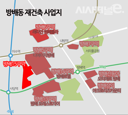 [시사저널e=길해성 기자] 서울 방배동 재건축 최대어로 꼽히는 방배15구역이 시공사 선정 절차에 돌입했다. 이곳은 1700가구 규모에 더블 역세권 입지를 갖춰 사업성이 우수하다는 평가를 받는다. 방배동 일대 마지막 남은 대형 사업장인 만큼 대형 건설사 간 치열한 경쟁이 예상된다.