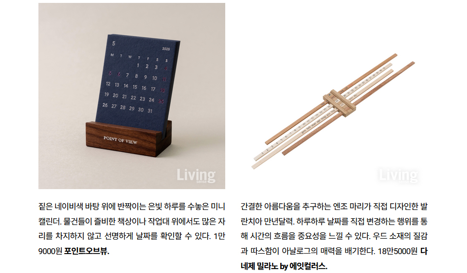 일상 속에서 시간의 미학을 즐길 수 있는 디자인 캘린더.