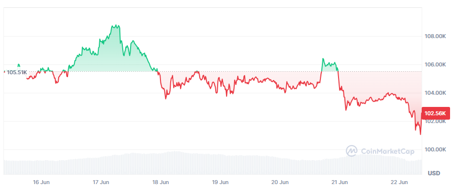 22일 글로벌 가상자산 시황 플랫폼 코인마켓캡에 따르면 이날 오전 8시 23분 비트코인은 10만1527달러(약 1억3945만원)로 일주일 전과 비교해 3.75% 하락했다. 지난 주말 10만5000달러선에서 거래되던 비트코인은 17일 한 때 10만8000달러선을 돌파했지만 이후 하락 전환했고, 21일부터는 낙폭이 더 커지면서 현재 10만달러선 초반에서 거래되고 있다.