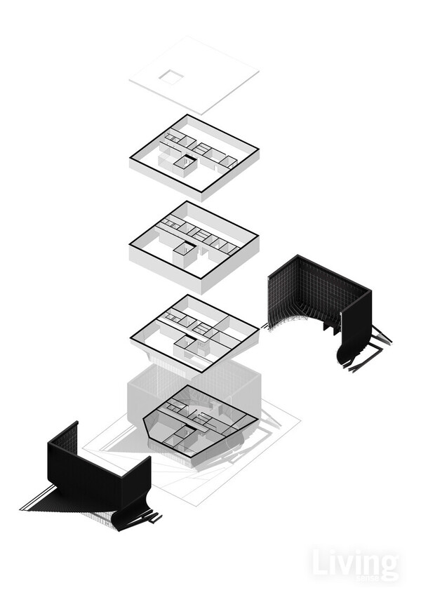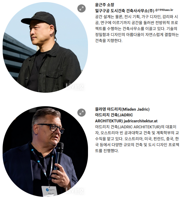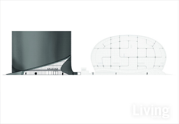 서울시립 사진미술관은 서울로봇인공지능과학관(이하 로봇과학관)과 나란히 자리하고 있다. 미술관이 설계 공모에 들어가기 전, 이미 로봇과학관의 설계안이 확정된 상태였다고. 서로 다른 목적을 지닌 두 공공건물이 나란히 들어서야 했기 때문에 사진미술관은 주변과 조화를 이루면서도 고유의 존재감을 드러내야 했다. 특히 타원형으로 건축될 예정인 로봇과학관과의 유기적인 관계 설정이 중요한 과제로 떠올랐다. 윤근주 소장과 야드리치 교수는 일반적으로 사각형으로 설계되는 미술관이 곡선의 건물과 어떻게 관계를 맺을 수 있을지를 고민했고, 로봇과학관의 곡선형 실루엣을 ‘외부로부터의 밀어냄’이라는 개념으로 받아들였다. 이에 따라 사각형의 건물을 비틀고 휘어지듯 만들어, 위에서 아래로 내려오는 선이 옆 건물의 곡선에 의해 밀려난 듯한 형상을 완성했다.