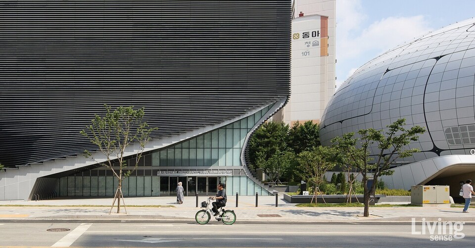 서울시 도봉구 창동에 사진을 위한 특별한 공간이 탄생했다. 지난 5월 29일 문을 연 ‘서울시립 사진미술관’은 국내 공공미술관 가운데 처음으로, 오로지 사진이라는 한 매체에 집중해 기획된 곳이다. 완공까지 10년이라는 시간이 걸렸고, 오랜 기다림 끝에 마침내 그 모습을 드러냈다. 지하 2층부터 지상 4층까지 이어지는 건물 안에는 사진 수장고와 전시장은 물론, 포토 북 카페, 사진 라이브러리, 암실 등 누구나 사진을 더 가까이 경험할 수 있는 공간으로 채워졌다. 미술관 건물에서 가장 먼저 눈에 띄는 것은 그 독특한 형태다. 여러 장의 카드를 반듯하게 쌓아 올린 뒤 그것을 비틀어 놓은 듯한 모습. 수평으로 쌓아 올린 콘크리트 루버 사이로 얇은 철판 네트를 덧대어 구현한 이 구조는 묵직함과 가벼움이 공존하며, 자연스러운 리듬감을 품고 있다. 이 형태의 출발점은 한 장의 스케치였다. 오스트리아 건축가 믈라덴 야드리치 교수와 한국의 일구구공 도시건축 건축사사무소(주)를 이끄는 윤근주 소장이 서울시립 사진미술관 설계를 함께 맡았다. 이 둘의 협업은 야드리치 교수가 윤근주 소장에게 보낸 한 장의 스케치에서 시작됐다. 정사각형 건물을 살짝 비틀어 곡선을 만들고, 그 곡선이 흘러내리듯 땅으로 내려오는 구조. 야드리치 교수가 처음 그려낸 단순하면서도 상징적인 아이디어는 설계부터 공사 완료까지 약 6년에 걸쳐 현실이 되었다. 건물은 카메라 조리개가 회전하는 순간을 닮았다. 바라보는 각도와 빛의 방향에 따라서도 조금씩 다른 인상을 준다. 직선과 곡선이 만나는 지점에서는 그림자의 흐름과 함께 건물의 역동성이 느껴진다. 특히 바닥 쪽이 살짝 들린 듯한 구조 덕분에 건물은 땅에 내려앉는 듯한 묵직함과 동시에 공중에 떠 있는 듯한 묘한 긴장을 품고 있다. 오랜 시간과 노력을 들여 완성된 이 미술관은 사진이라는 매체가 품은 본질에 깊이 다가가고자 한다. 야드리치 교수는 자신의 에세이 《프로젝트와 오브제: 세상 어떤 건물도 홀로 존재하지 않는다》에서 “건축은 무한한 시간 여행이 아니며, 미술관은 대서사시의 서두”라고 말했다. 그에게 미술관은 그 자체로 완성된 무언가가 아닌, 이야기가 시작되는 장소라는 것. 윤근주 소장도 같은 생각을 전한다. “건물은 완공되는 순간 끝나는 것이 아니다. 건물에 생명을 부여하는 것은 큐레이터가 만들어가는 전시이며, 결국 미술관을 기억하게 하는 것은 관람객의 경험이다”라고. 그 말처럼, 서울시립 사진미술관은 한국 사진 역사의 흐름을 보여주는 〈광채: 시작의 순간들〉과 동시대 사진작가들의 시선을 담은 〈스토리지 스토리〉, 2개의 특별전으로 첫 장면을 열고 있다. 건축이 오롯이 사진만을 위한 무대를 만들었다면, 이제부터는 그 안에서 펼쳐지는 이야기들이 공간을 채워나갈 차례다. 사진이 기록하는 빛의 시간들이 이곳에서 어떤 이야기로 이어질지 기대가 모인다.