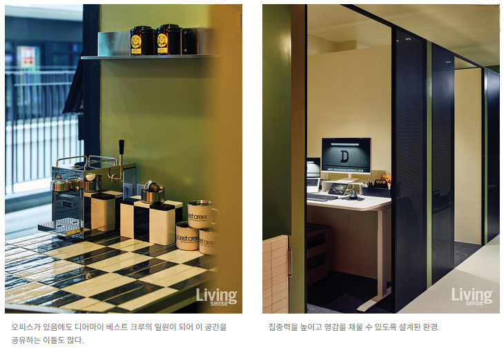 디어마이베스트크루는 디자이너들이 머물며 자연스럽게 소통하고 협력할 수 있는 공간을 지향한다. 이를 위해 개방형 배치와 24시간 출입, 편리한 교통과 주차 같은 실질적 조건까지 설계에 담았다.