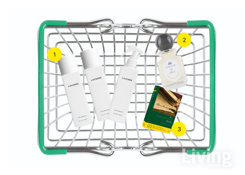 1. 식물에서 얻은 성분으로 만들어, 얼룩의 원인이 되는 단백질을 부드럽지만 강력하게 분해하는 ‘얼룩제거제’. 295ml, 3만6000원 라버리.