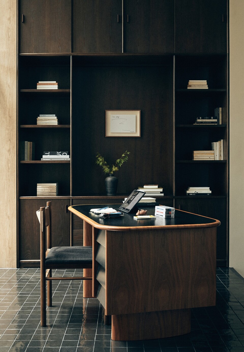 불필요한 것을 덜어낸 끝에 남은 단 하나의 태도. 그것은 그가 일하고 살아가는 방식이다. 본질에 집중하는 삶. 그의 책상은 그의 수행이다.