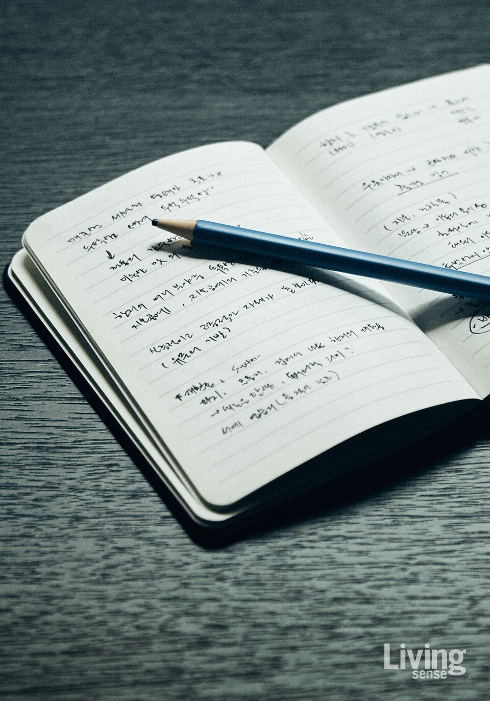 그의 입에서 나온 ‘두려움’은 허투루 쓰인 감정이 아니다. 화려한 물건 하나, 감정을 흔드는 사소한 기척 하나조차도 일의 리듬을 방해할 수 있다는 것을 그는 안다. 펜 하나를 고를 때도 가장 낮은 목소리를 가진 도구를 쥔다. 염주는 운을 구하는 기도이자 흔들리는 마음을 다잡는 작은 의식이다. 그가 곁에 두는 책들도 그러하다. 일의 감각을 세우고, 마음의 중심을 지탱해주는 문장들. 이처럼 그의 책상에는 중심을 지키기 위한 도구들만이 허락된다.