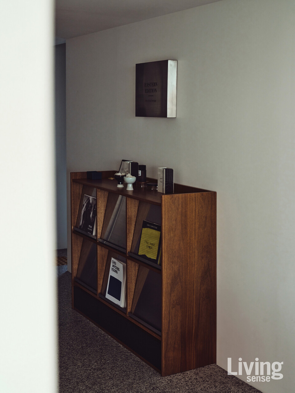 이태원에 새로운 보금자리를 마련한 갤러리 신라는 6층부터 8층까지의 공간을 사용한다. 층별 구성을 어떻게 기획했는지 묻자 이준엽 디렉터는, “이스턴 에디션과의 협업, 그리고 책”이라고 답했다. 6층은 가장 드라마틱한 인상을 주는 책의 첫 페이지다. 엘리베이터 문이 열리자마자 나타나는 낮고 좁은 통로를 지나면 가장 먼저 작품이 시야에 들어온다. 관람객은 단 3초 만에 시각적 이미지를 받아들이고 판단을 내리며, ‘이 콘텐츠를 더 보고 싶다’는 동기를 얻게 된다. 7층은 책의 중반부다. 대형 작업이 아니더라도 작가의 생각과 서사가 담긴 작업들을 배치해, 6층에서 생긴 호기심과 웅장함을 어느 정도 풀어내면서도 작가의 의중과 세계관을 더 알고 싶게 만든다. “6층과 7층의 가장 큰 특징은 좁고 낮은 통로입니다. ‘엘리스의 토끼굴’이라 부르는 이 통로는 외부와의 단절을 의미하고, 이 경험을 거친 뒤 전시장의 높은 층고를 더욱 크게 느끼게 하는 장치이기도 하죠.” 8층은 라운지다. 멧 갈라 디너에서 영감을 받은 이 공간에는 24인이 함께 앉을 수 있는 긴 테이블이 놓여 있다. 직접 조명 대신 간접 조명만을 사용해 ‘보이지 않음으로써 더 보여주는’ 역설적 미학을 구현했다. 이번 새로운 공간의 인테리어는 디자인 브랜드 이스턴 에디션 @easternedition과 협업해 완성도를 더했다. 단순히 가구를 배치하는 차원을 넘어 작품과 공간, 가구가 하나의 맥락 안에서 조화를 이루도록 설계한 것이 포인트라고. 이준엽 디렉터는 “이스턴 에디션은 제품 자체의 완성도뿐 아니라 갤러리 콘셉트에 맞춘 주문과 준비, 설치까지 전 과정에서 느껴지는 정성과 커스텀 메이드의 감각이 인상적이었다”며, 갤러리스트로서 큰 영감을 얻었다고 전한다. 갤러리 신라가 추구하는 조화와 미학이 이번 이스턴 에디션과의 협업을 통해 더욱 선명하게 드러난 것. 이로써 갤러리 신라는 단순한 전시장이 아니라 커뮤니티를 위한 무대이자, 다층적 경험에 최적화된 공간으로서의 완성미를 갖추게 됐다.