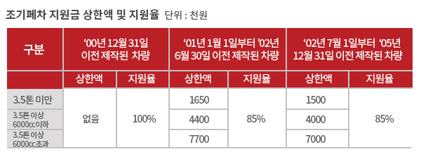 저소득층 노후차량 소유주는 일반대상자 보다 10% 더 지원받을 수 있다. 저소득층 기준은 종합소득금액이 2400만원 이하 자영업자, 연봉 3600만원 이하 근로자 또는 기초생활수급자다.