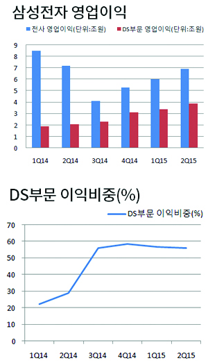 삼성전자의 경우 2분기 성장은 반도체가 이끌었다. 반도체 영업이익이 3조 8700억 원으로 전체 영업이익의 절반을 넘겼다. 지난해 3분기 이후 지속된 현상이다.