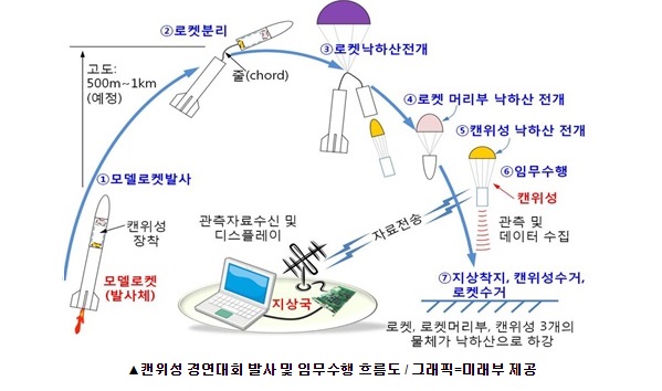 미래창조과학부(미래부)는 6일 전남 고흥 항공센터에서 초·중·고교생과 대학생들을 대상으로 한 인공위성 제작·발사 대회인 '캔위성(CanSat) 체험·경연대회' 본선을 개최한다.