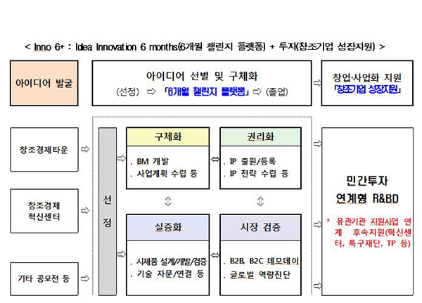 이노6+는 6개월 챌린지 플랫폼과 창조기업 성장지원 사업을 결합한 것이다.
