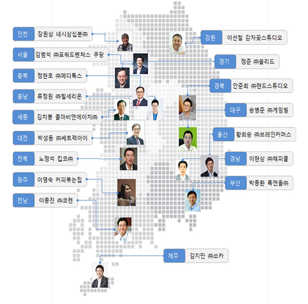 소셜커머스 쿠팡으로 유명한 김범석 ㈜포워드벤처스 대표, 모바일게임으로 유명한 송병준 ㈜게임빌대표 등도 참여했다. 이들은 관련 업종 선두에 선 대표 기업가들이다. 코스닥 상장 기업을 운영하고 있는 기업가도 참여했다. 정현호 ㈜메디톡스대표, 김치봉 콜마비앤에이치㈜ 대표 등이다.