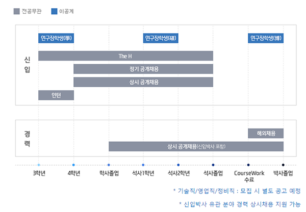 인턴사원 채용 대상은 개발(디자인 포함)과 플랜트 부문 2016년 8월 또는 2017년 2월 졸업 예정인 3학년 2학기 또는 4학년 1학기 대학생이다. 단 디자인 분야는 기졸업자나 석사 학위 소지자도 지원 가능하다.