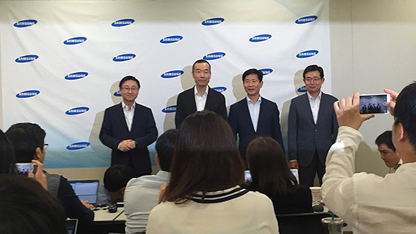 브리핑 룸엔 최 의장과 윤주화 패션부문 사장, 김봉영 리조트 건설부문 사장, 김신 상사부문 사장이 나란히 나타났다. 삼성물산 이사회는 각 부문별 4인 대표이사 체제를 유지할 전망이다.