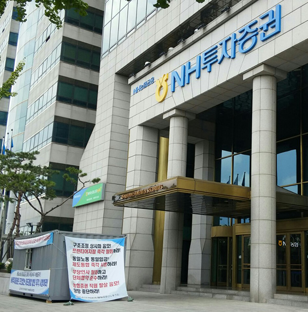 한 농협 출신 직원은 "농협 출신 노조 직원이 프런티어지점에 5명 포함되는 등 발령 기준이 불투명하고 노조에 대한 보복성 인사로 간주되는 부분이 있다“며 ”회사 측은 발령 기준을 명확하게 밝히고 프런티어지점을 없애야 한다“고 주장했다.