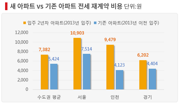 이에 비해 2013년 이전 입주한 기존 아파트의 전세가격은 같은 기간 24.9% 올랐고, 재계약 시 평균 상승 비용은 5424만원이었다.