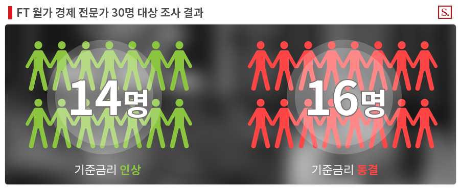 월가 경제 전문가 30명 중 14명은 미국 연방준비제도이사회(Fed, 이하 연준)가 이달 연방공개시장위원회(FOMC)에서 기준금리를 인상할 것으로 전망한다고 17일(현지시각) 파이낸셜타임즈가 보도했다.