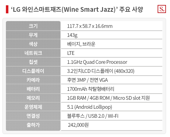 SKT와 KT를 통해 출시된 와인스마트재즈는 작년 9월 출시된 ‘와인스마트’를 잇는 LG전자 ‘와인폰’시리즈의 7번째 제품이다.