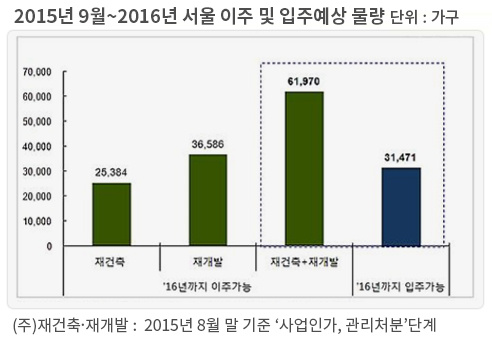부동산114 관계자는 “이주 물량 대비 2016년까지 예정된 공급(입주)이 많지 않은 상황이라서 내년에도 전·월세 불안 현상이 이어질 가능성이 크다”고 분석했다.