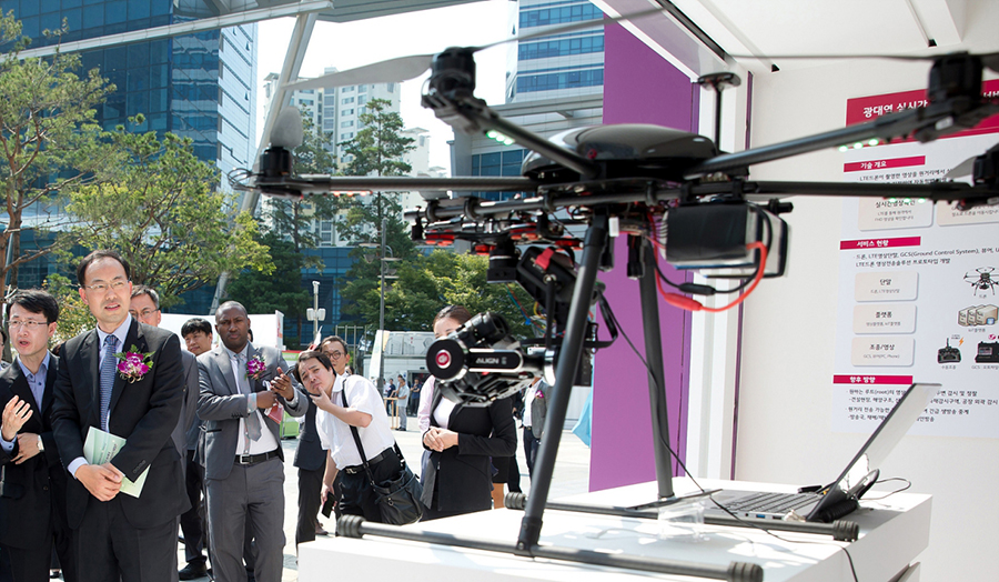 LG유플러스가 상암 디지털미디어센터(DMC)에서 드론에서 촬영한 영상을 바로 보내는 기술을 선보인다. LG유플러스는 상암 DMC 페스티벌 2015 행사를 열고 차세대 기술을 공개했다고 23일 밝혔다. 이 행사는 다음달 10일까지 열린다.