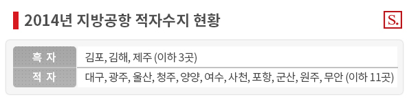 이로인해 지방 거점 공항인 김포·김해·제주를 제외한 11개 지방 공항은 만성적자에 시달리고 있다. 강원도 원주공항은 지난해 22억원의 적자를 냈다. 울산공항은 99억원, 여수공항은 93억원의 적자를 기록했다.