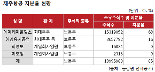 4만7000원 수준을 공모가로 가정하면 애경그룹은 지배주주 지분을 유지하면서도 이번 상장을 통해 2300억원 이상을 조달할 것으로 예상된다. 현재 애경그룹이 보유하고 있는 제주항공 지분은 84.78%다. 나머지 지분 중 4.5%는 제주도가 보유하고 있고 그 외에는 소수주주 지분으로 나뉘어져 있다.