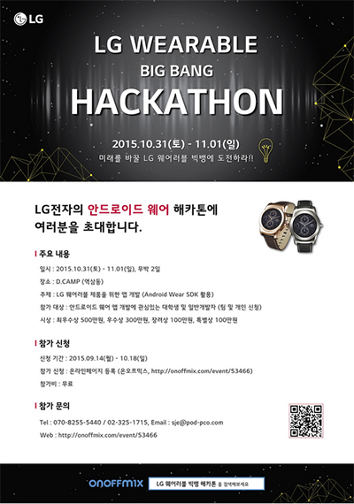 LG전자는 오는 18일까지 ‘온오프믹스’를 통해 참가 신청을 받고 15개 팀을 최종 선정할 예정이다. 선정된 팀은 31일부터 무박 2일 동안 기획한 아이디어를 ‘프로토타입’ 앱으로 구현하면 된다.
