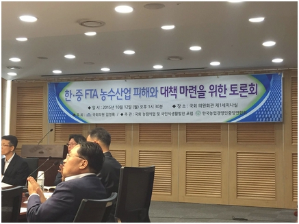 12일 이 같은 내용을 담은 ‘한·중 FTA 농수산업 피해와 대책 마련을 위한 토론회’가 국회의원회관에서 열렸다. 이번 토론회는 김영록 새정치민주연합 의원이 주최하고 국회 농림어업 및 국민식생활발전포럼과 한국농업경영인중앙연합회가 주관했다.