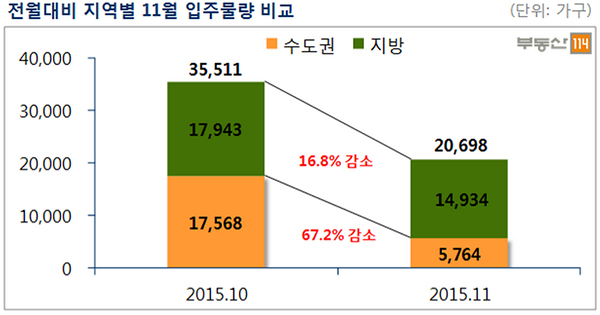 지역별로는 수도권에서 5764가구가 입주하고, 지방에서는 1만4934가구가 11월 집들이를 시작한다.