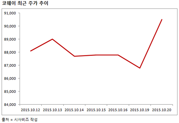 이날 코웨이에 투자자들의 관심이 집중된 데는 전일 CJ그룹과 하이얼 컨소시엄이 코웨이의 적격인수후보로 선정됐다는 소식 덕분이었다. 인수합병 거래 시 일반적으로 인수되는 회사의 주가가 상승하는 데다 증권가에서는 CJ 컨소시엄에 인수될 경우 긍정적 효과가 날 것으로 보고 있다.