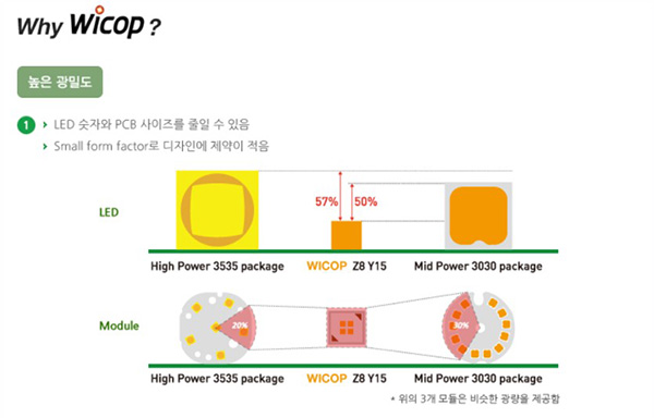 서울반도체는 “2016년 20조원 시장을 겨냥한 WICOP에 이은 새 LED 제품 WICOP2도 세라믹 기판이 필요 없어 원가 경쟁력이 뛰어나다”면서 “저가 중국 제품과 다른 성능으로 전세계로부터 러브콜을 받고 있다”고 밝혔다.