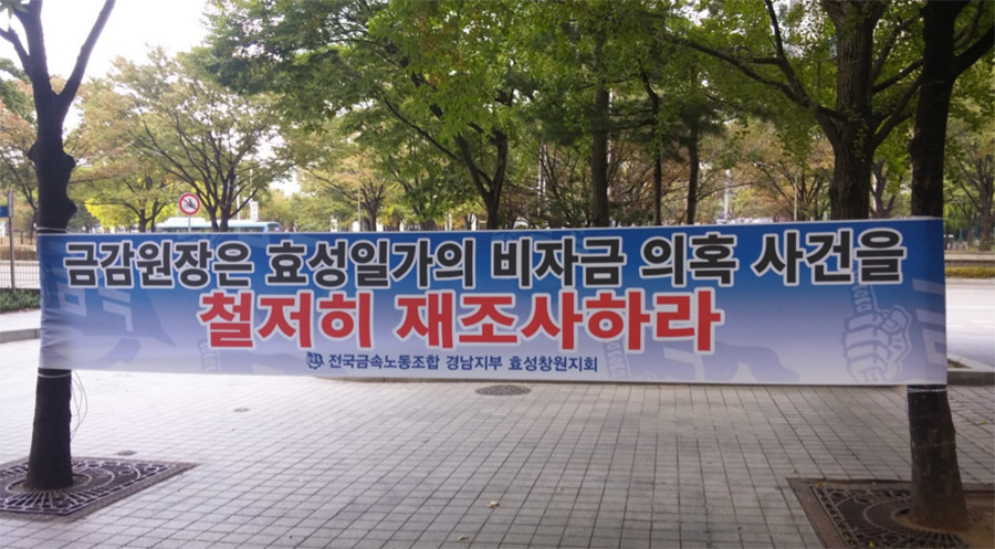 그동안 금감원 앞에는 효성그룹 비자금과 분식회계 등에 대해 조사를 촉구하는 시위가 열렸다. 시위 참가자들은 금감원이 효성그룹 의혹에 미온적이라며 수사를 촉구하는 현수막을 내걸기도 했다.